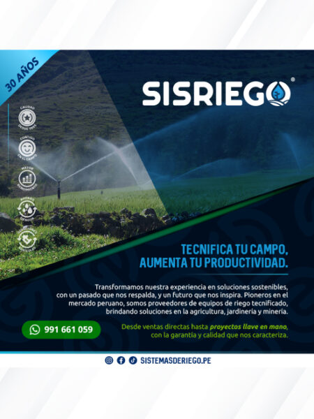 Desde 1995, nuestro grupo empresarial SISRIEGO viene cultivando innovación y confianza, brindando s...